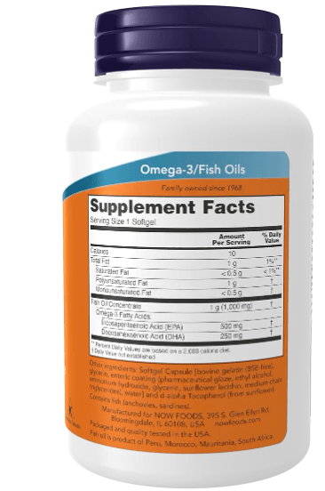 O Ultra Omega 3 da Now contém doses fortes extras de EPA e DHA, dois ácidos graxos essenciais.