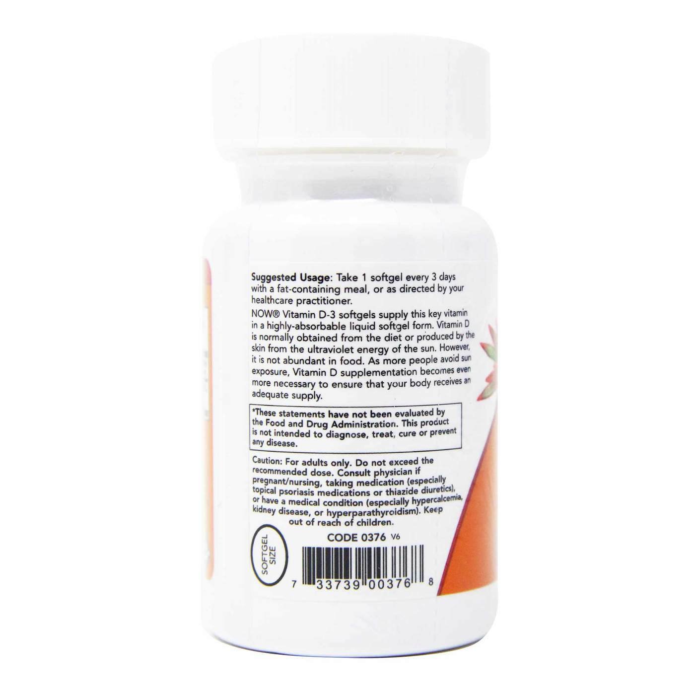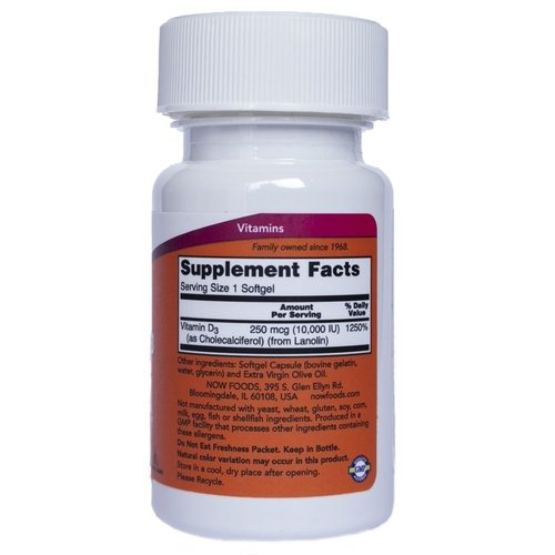 VITAMINA D3 - (10.000UI / 120 CÁPSULAS) - NOW FOODS